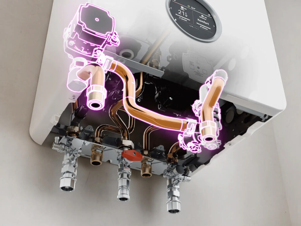 Einfacher und schneller Gerätetausch an die bestehenden Anschlüsse vorhandener Gas-Heizgeräte.